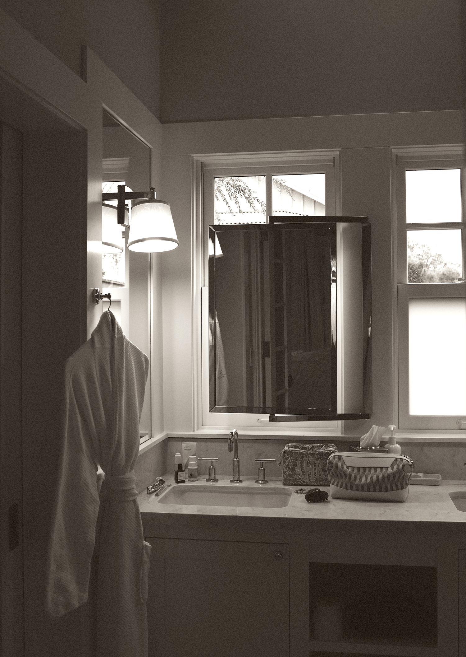 The cozy cottages in wine country make my nervous system feel held. The heated floors, too! I shared this snap while on our trip and a bunch of you asked about my cosmetic bags: monogram one is from a favorite Etsy shop and the other is old from Au Départ.