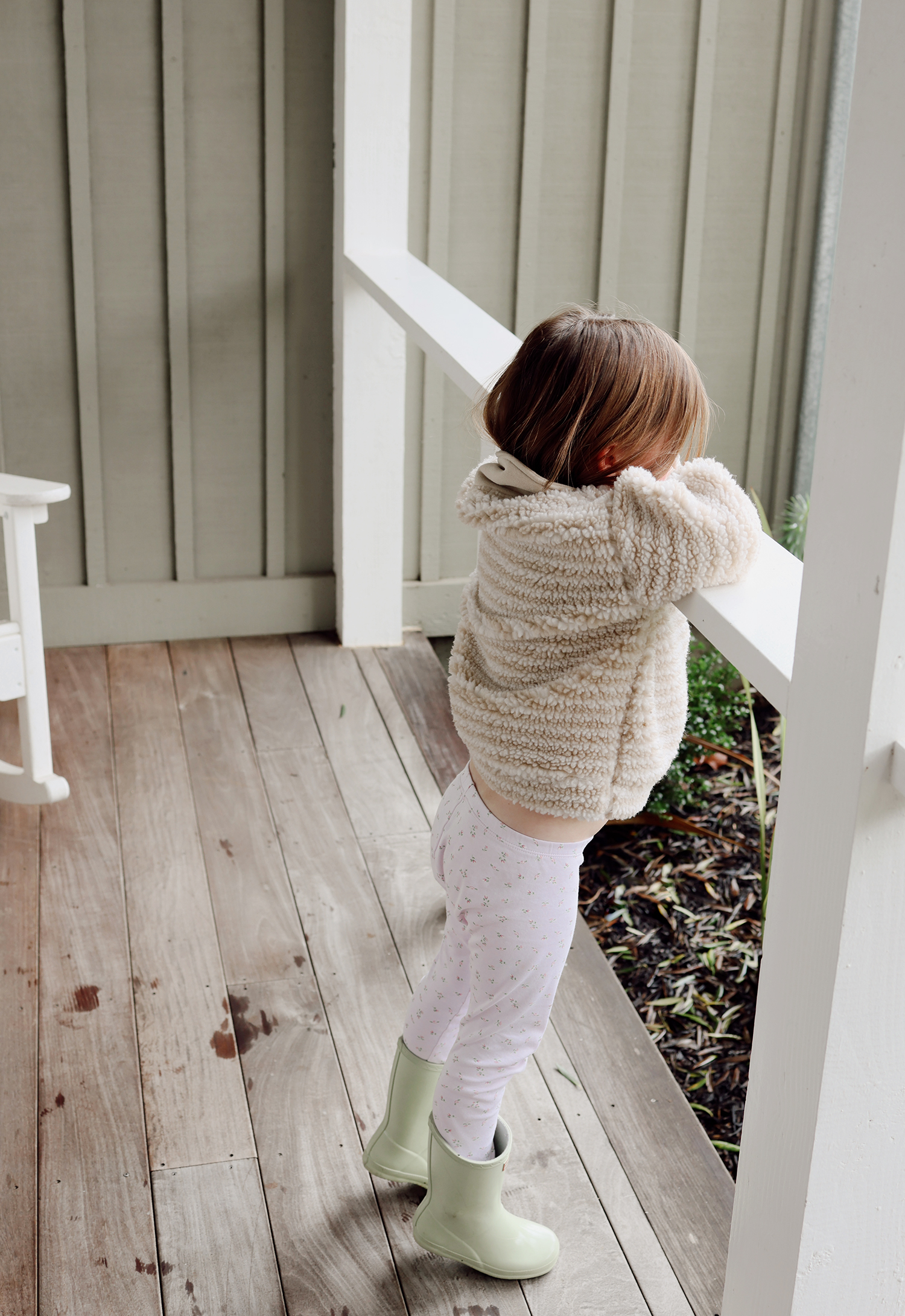 Grace’s pullover is years old, I bought it way too big for her and she finally fits in it as of the last year. Her jammies are favorites by Kissy Kissy (always size up), and her Hunter boots.