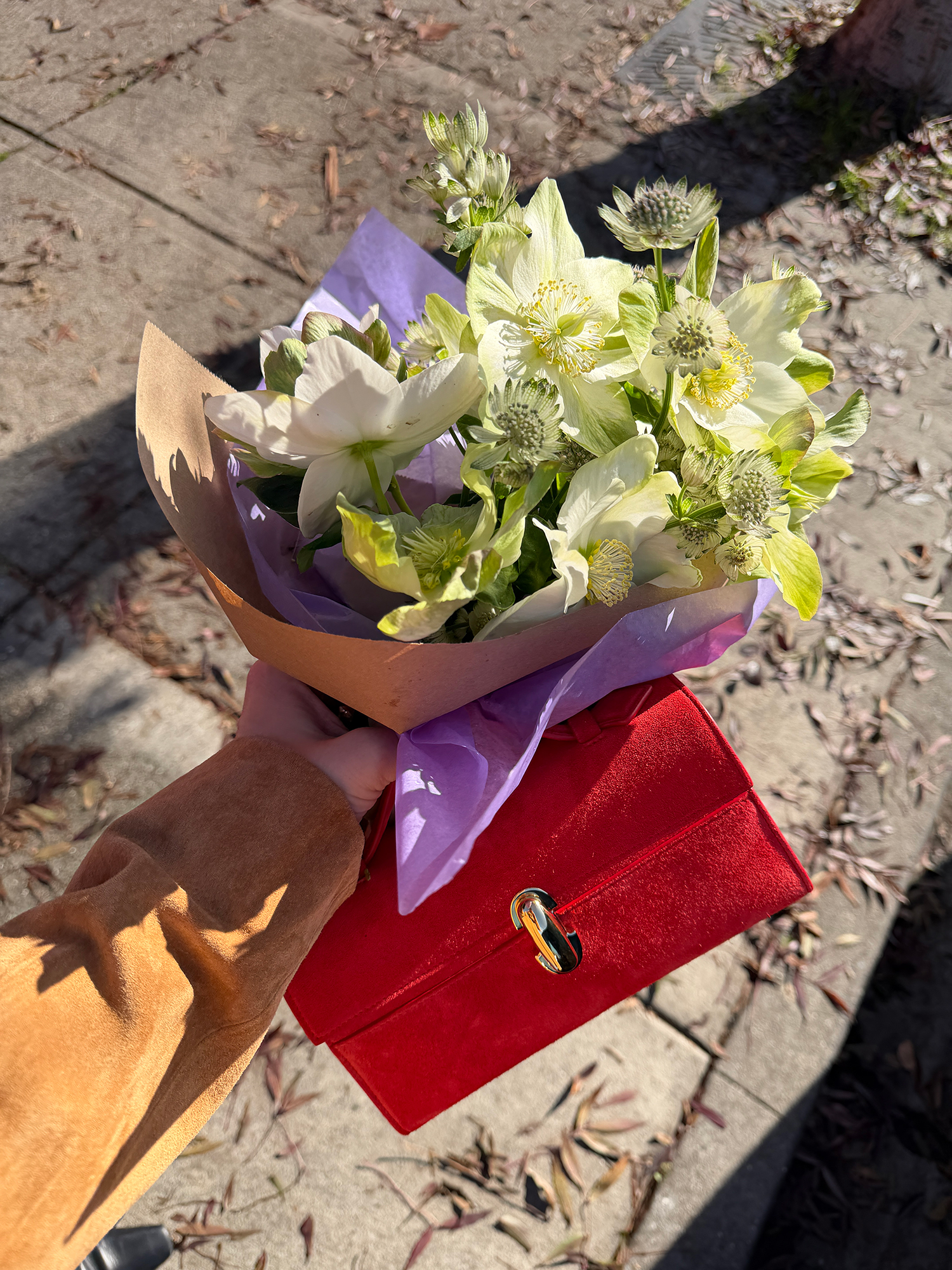 Anyway, Chez Panisse is one of our go-tos. There’s this cute little flower shop a couple of doors down we popped into after lunch and grabbed these beauties! The bag is by Savette, in case you are curious! My favorite shade of red. It also comes in a red leather.